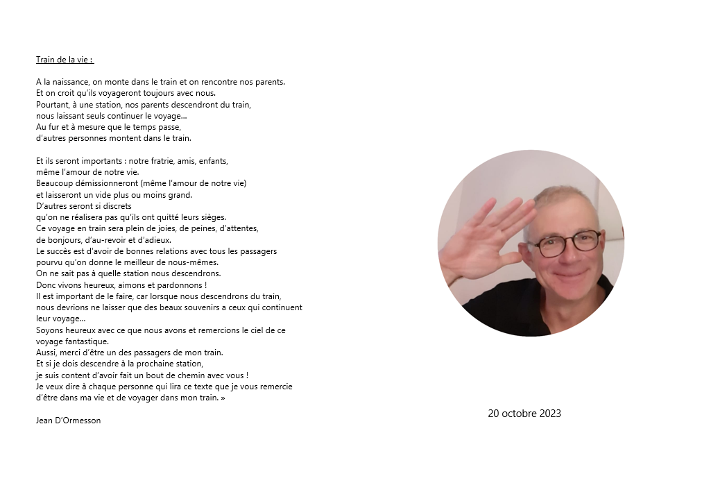 Je veux dire à chaque personne qui lira ce texte que je vous remercie d’être dans ma vie et de voyager dans mon train.